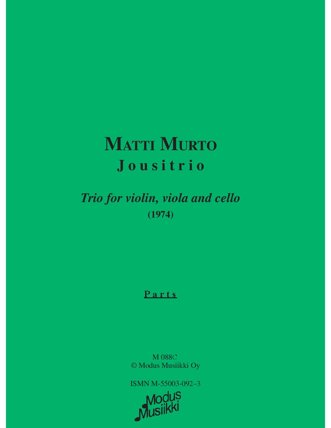 Murto M: Jousitrio. Trio for violin, viola and cello(1974), parts.