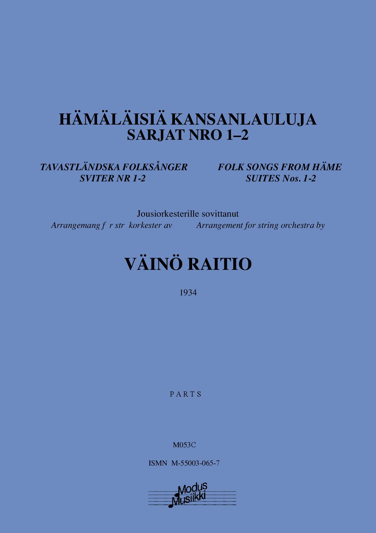 Raitio Väinö: Hämäläisiä kansansävellyksiä. jousiorkesterin sarjat I–II, stemmat.